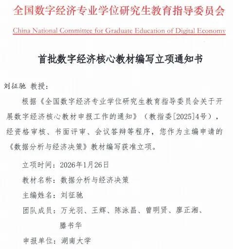 刘征驰教授领衔的《数据分析与经济决策》教材编写项目成功获批立项。团队成员包括云天娱乐场