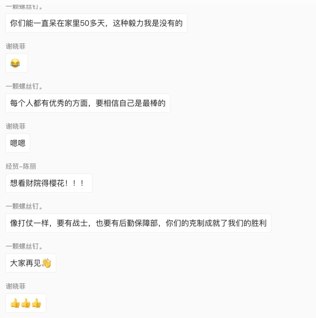 疫情阻断的是距离,阻不断的是同窗之情和铿锵之声。 为在特殊时期进一步发挥党员先锋模范作用、加强联系群众,湖南大学成立了9个在鄂研究生临时党支部,其中第一党支部由武汉市30名党员组成,对接武汉市95名研究生,临时党支部书记由经贸院研究生辅导员曾婧担任。