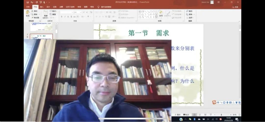 对于同学们的学习效率问题,刘老师直言,直播只是换了一种上课的形式,仍是正常的上课;但对部分学习上需要督促、上课时易做小动作的同学而言,直播上课的效果很可能就不尽人意了。这同时也是网络授课模式无法解决的一个困扰。对此,刘老师想说:“但是大家都是大学生了,并且家里可能还有弟弟妹妹,哥哥姐姐,爸爸妈妈,所以我假定大家的学习态度是一个大学生的学习态度,而不是一个小学生的学习态度。我深信我们的大学生是自觉的,而在这样一个大学生都能够认真努力的进行学习的假定下,我倾向于认为直播课的效果非常好。”虽有所担心,但刘老师还是对学生的自律性抱有一定信心。