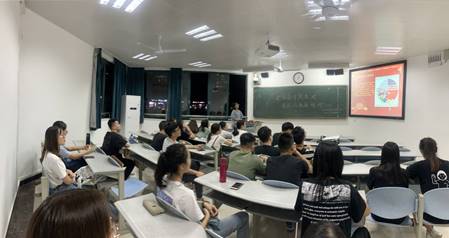 国贸1801班组织预备党员、发展对象和入党积极分子向同学宣讲自己对祖国高速发展的认识和理解,并采用知识竞答的方式激发同学参与理论学习的积极性。在知识竞答中积分排名靠前的同学将会获得印有“中国梦”标识的钥匙扣。同时班委精心准备了印有“七十年”字样的蛋糕,蛋糕中饱含着同学们和新中国同呼吸、共命运、齐成长的良好祝愿。