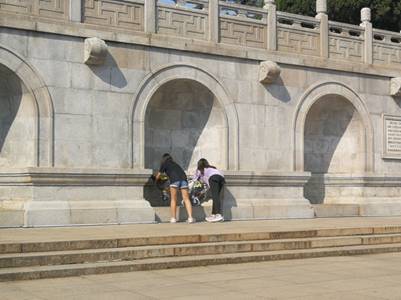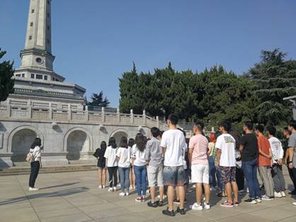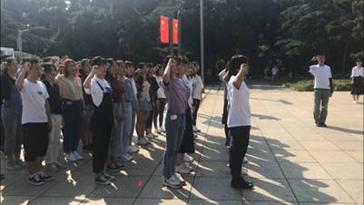 主题党日以庄严的纪念仪式作为开端。站在建国七十周年的时间点,我们不能忘记为中国人民解放事业而光荣牺牲的无数革命先烈们,烈士公园为我们提供了缅怀先烈、追忆历史的机会和场合。全体党员和发展对象站立在纪念碑前,首先由预备党员程文成、周蒋欣悦作为代表向人民英雄致献鲜花;随后全场肃静,为革命先烈默哀一分钟;最后预备党员王子方带领全体党员重温入党誓词。无论是肃穆沉寂还是铮铮誓言,传递的都是对老革命前辈的敬仰与怀念,表达的都是“与祖国同呼吸,与时代共命运”的意愿与决心。