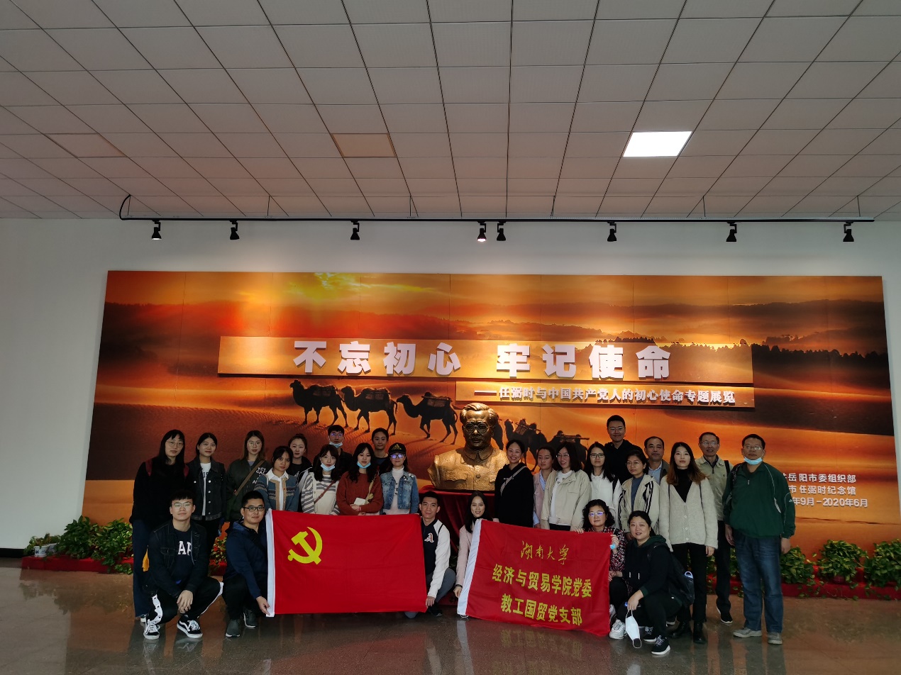 参观活动结束之后,党员们结合参观内容、自身实际以及习总书记在湖南考察重要讲话精神谈了自己的体会。在湖湘这片红色热土上,多少人前赴后继为新中国的成立以及祖国的建设不计生死、不计代价贡献属于自己的一份力量。教工国贸党支部书记莫莎老师说:“学习革命史和革命英烈的英雄事迹,激发爱国热情,提高党员的政治觉悟,加强党性教育十分必要。高校教师特别是党员教师担负着培养全面发展的社会主义建设者和接班人的神圣职责。目前我们身处百年未有之大变局,又恰逢决胜全面建成小康社会、决战脱贫攻坚之年,我们要始终牢记人民教师的使命、坚守立德树人的初心,增强为党育人、为国育才的思想自觉,为培养德智体美劳全面发展的社会主义建设者和接班人做出新的更大贡献,不负党和人民的重托。”研究生导师团队第十党支部书记罗忠辉说道:“作为一名学生党员,‘骆驼精神’和革命前辈留下来的‘红色基因’有助于我们形成成熟的人生观、价值观,走好人生的路,系好人生的第一颗纽扣。我们要将自己的青春理想和祖国发展紧密联系在一起,多阅读文献并积累写作经验,积极参加学术会议,努力提升自己的学术素养,培养自己的科研能力,不做“佛系”青年,把论文写在祖国大地上,为祖国建设贡献属于自己的一份力量。”张狄元说到:“参观任弼时纪念馆,让我印象最深的是弼时同志的“三怕”精神。作为一名青年党员,应以弼时同志的“三怕”精神为参照,设立符合自己的“三怕”原则。一怕学习不认真,二怕科研不上心,三怕身心不健康。作为一名研究生党员,本职工作是学习,应加强专业学习,同时也要坚持锻炼身体,用运动来洗涤身体,用读书来净化心灵,做一个身体和灵魂都在路上的青年人。”王亢说到:“对待学习科研也要像骆驼精神一样要不怕苦累、静心专研、尽善尽美,‘能走一百步,就绝不走99步’!”