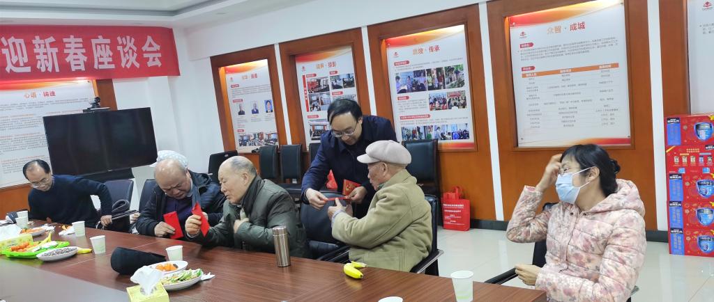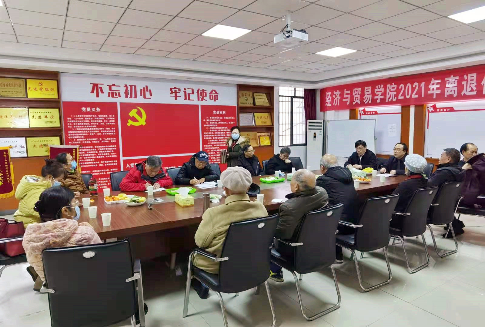 院长侯俊军教授,党委书记祝树金教授,副处级组织员刘周平同志,院离退休工作专干汪新华老师,院办主任肖力老师,院工会福利委员张意湘老师参加会议座谈,大家欢聚一堂,喜迎2021年新春的到来。