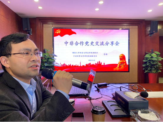 副院长、中非经贸合作研究院执行秘书长肖皓教授以中非合作党史为主题进行微党课教学,结合丰富翔实的历史文献和历史图片,生动、真实再现中国与非洲建立合作关系的历史进程,全面展示中非关系的坚不可摧。