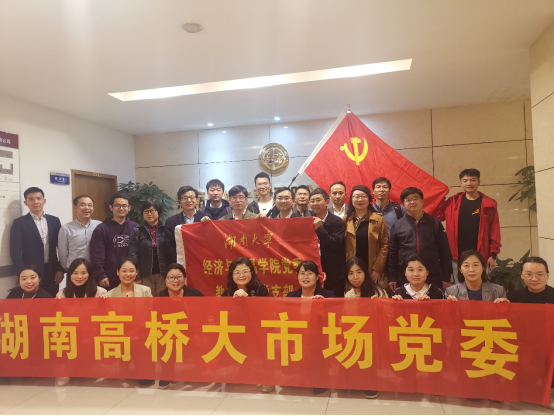 湖南大学教工国贸党支部与高桥大市场联合党建活动圆满顺利进行,最后双方合影留念。