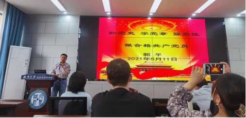 财政学科带头人、研究生导师团队第一党支部指导老师郭平教授主讲了主题为“知党史 学党章 强党性——做合格共产党员”的党课,带领各支部党员学习了党史党章,他强调党员要提升自我党性修养:以史为镜,正确认识党章的历史地位和作用;以问题为导向,准确把握学习党章的现实意义;以强党性为目标,切实抓好党章的学习贯彻。