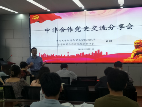 副院长、中非经贸合作研究院执行秘书长肖皓以“中非合作党史交流分享会”为主题进行微党课教学,通过丰富的历史文献和图片,生动地再现了中国与非洲建立合作关系的历史进程,全面展示了中非关系的坚不可摧。
