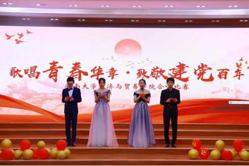 党委书记祝树金致辞,他指出此次合唱比赛是以歌声献礼百年党史,具有重要意义。传唱红歌是进一步缅怀革命先辈的丰功伟绩,铭记红色历史,继承革命传统;同时也是青年人展示青春风采,希望同学们唱出英雄气概,唱出心中豪迈,唱出对党的热爱和对远大理想的追求。随后,14个参赛班级依次上场表演,通过一些耳熟能详的传统红色歌曲和一系列新时代曲目的合唱,歌唱了同学们心中对建党百年的情感和对自己殷切的希望。