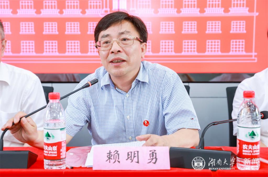 6月8日,由湖南大学与民建湖南省委联合共建的湖南大学民建经贸研究院成立大会暨首届论坛举行。湖南省政协副主席、民建省委会主委赖明勇,省委统战部副部长邓焕生,民建省委会副主委段安娜,校党委副书记、校长段献忠,校党委副书记陈伟,校党委常委、副校长谢赤出席活动。