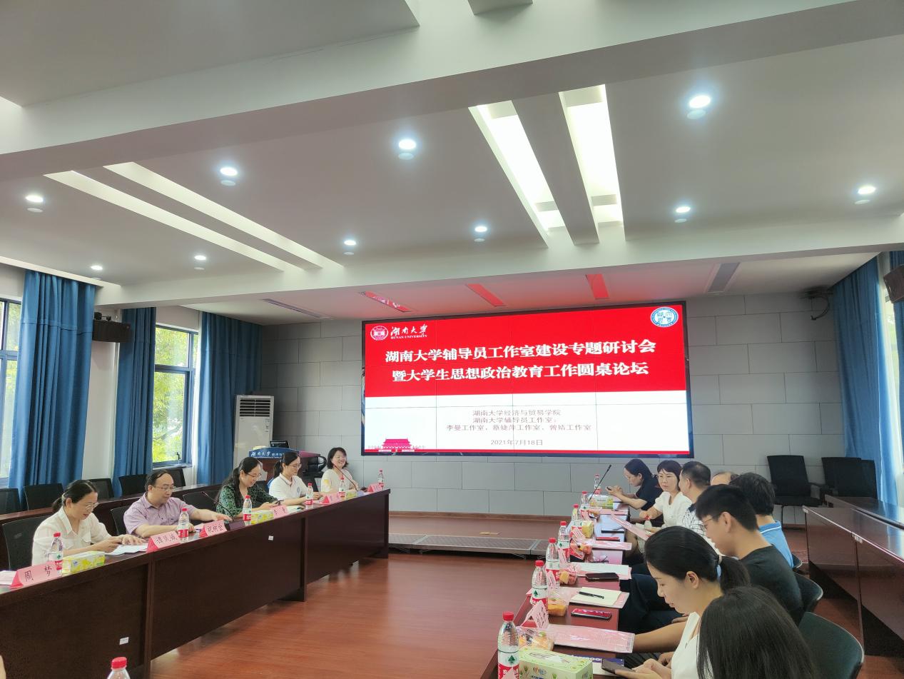 7月18日上午,由湖南大学辅导员工作室建设项目“李曼工作室”“蔡婕萍工作室(培育)”“曾婧工作室(培育)”联合发起的“辅导员工作室建设专题研讨会暨大学生思想政治教育工作圆桌论坛”在云天娱乐场